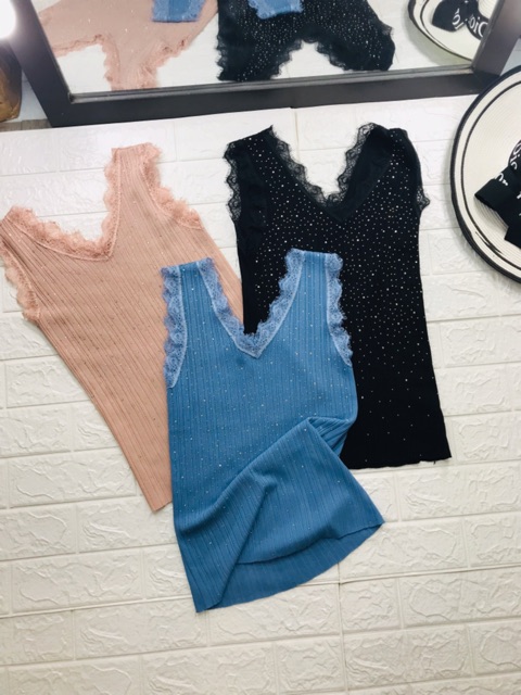 Thời Trang Nữ > Áo > Áo hai dây và ba lỗ || Áo len sát nách đính đá siêu lấp lánh