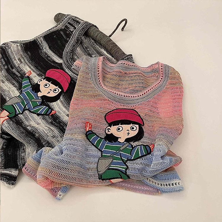 Áo len xât nách MTG thổ cầm loang Qc đáp hình cô gái đẹp nhức nách