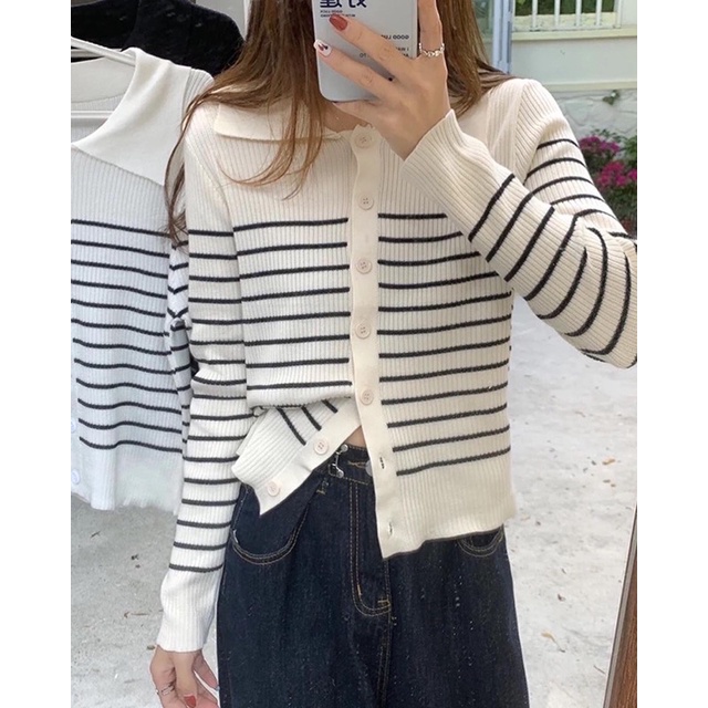 Giới thiệu Áo len tăm kẻ ngang chất dày freesize korea