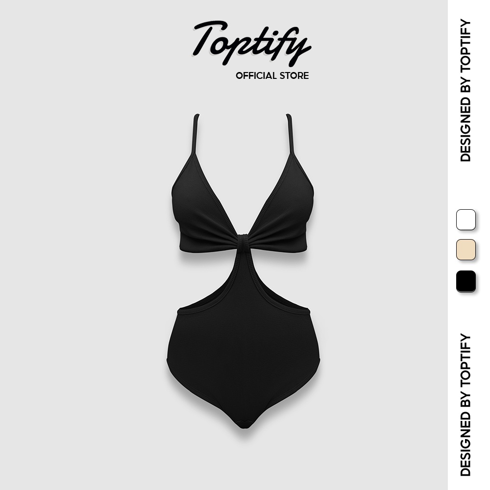Áo liền quần hai dây nữ TOPTIFY khoét eo phối nơ ngực Starle Bodysuit
