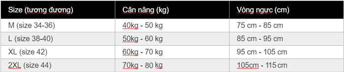 | Kích thước | Áo lót bầu cho con bú su đúc A40 có 4 màu đen, da, ghi, xanh với 4 size M, L, XL, 2XL từ 40kg đến 80kg mặc vừa.Size M tương đương với size 34-36, cho vòng ngực từ 75-85cm, cân nặng 40-50kg.Size L tương đương với size 38-40, cho vòng ngực từ 85-95cm, cân nặng 50-60kg.Size XL tương đương với size 42, cho vòng ngực từ 95-105cm, cân nặng 60-70kg.Size 2XL tương đương với size 44, vòng ngực từ 105-115cm, cân nặng 70-80kg. |
