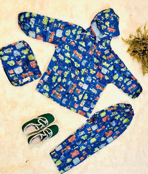 Bộ áo mưa với thiết kế áo rời quần, nút bấm tiện lợi, dễ dàng sử dụng kết hợp phối màu họa tiết đẹp mắt, tạo sự thích thú cho bé khi mặc, không gò bó.