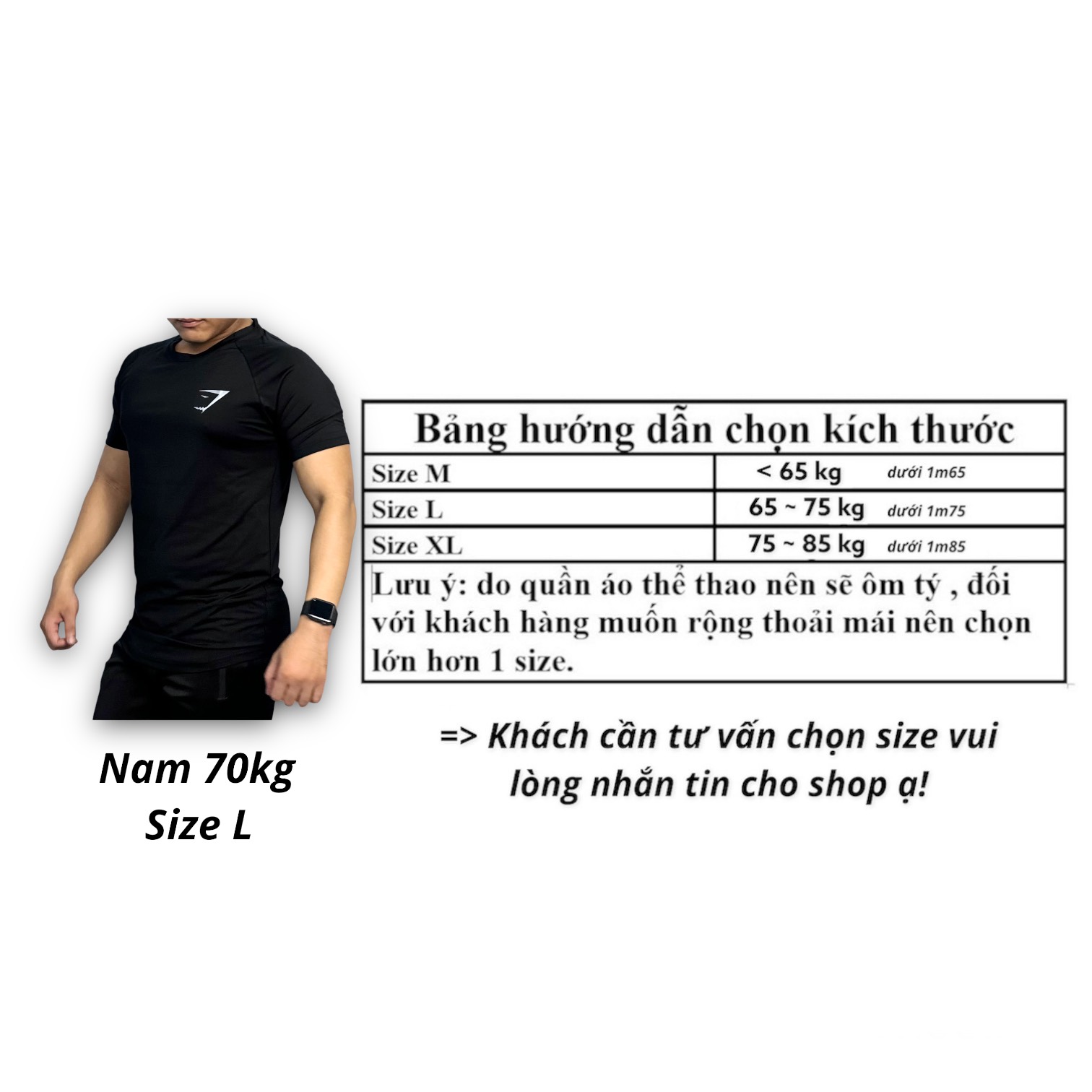 - Áo được thiết kế theo dáng ôm body, thích hợp cho người tập gym, chơi thể thao, chạy bộ, bơi, mặc nhà,