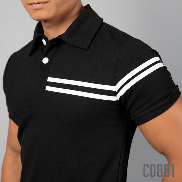 Áo ngắn tay có cổ - Áo polo 3 vạch trắng ngực cao cấp Gym Max c0801