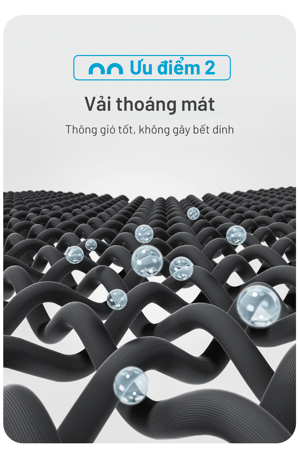 Chất liệu vải 1 lớp, nhẹ và có lỗ thoáng khí, giúp người mặc thoáng mát suốt ngày dài.