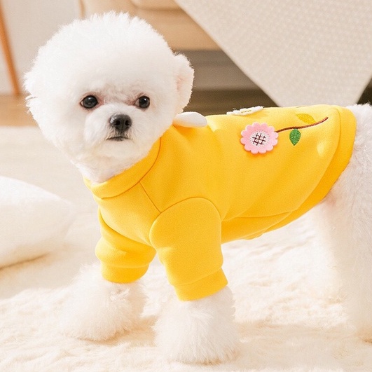 Áo nỉ cho thú cưng - áo nỉ lót bông họa tiết bông hoa xinh xắn cho chó mèoGiá SUNGOU