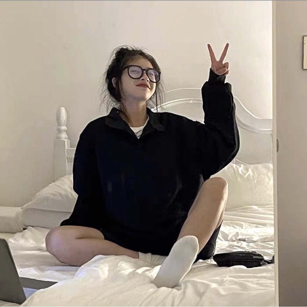 Thời Trang Nữ > Hoodie và Áo nỉ > Áo hoodies || Áo Nỉ Cổ Polo PEONYB Nữ [FREESHIP] Sweater form rộng tay bồng, hoodie trơn màu bánh bèo cá tính Ulzzang