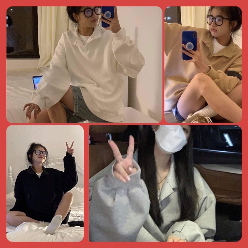 Giới thiệu Áo Nỉ Polo Nữ freeship Sweat zip nỉ bông dài tay bồng, form rộng Ulzzang(hàng sẵn)