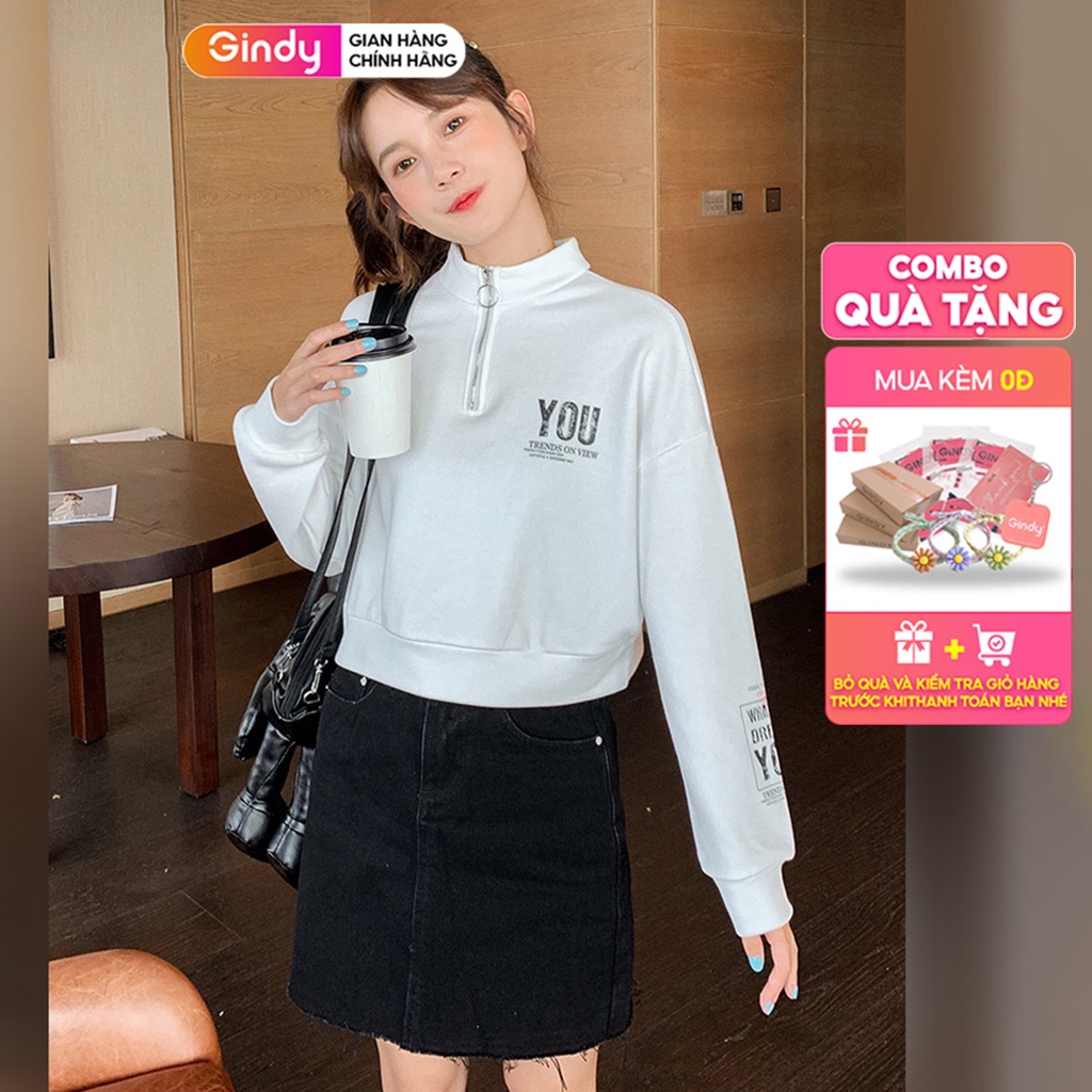 Giới thiệu Áo nỉ sweater dài tay nữ GINDY in hình cổ lọ khóa kéo dễ phối đồ thời trang thu đông Hàn Quốc 2021 A10105