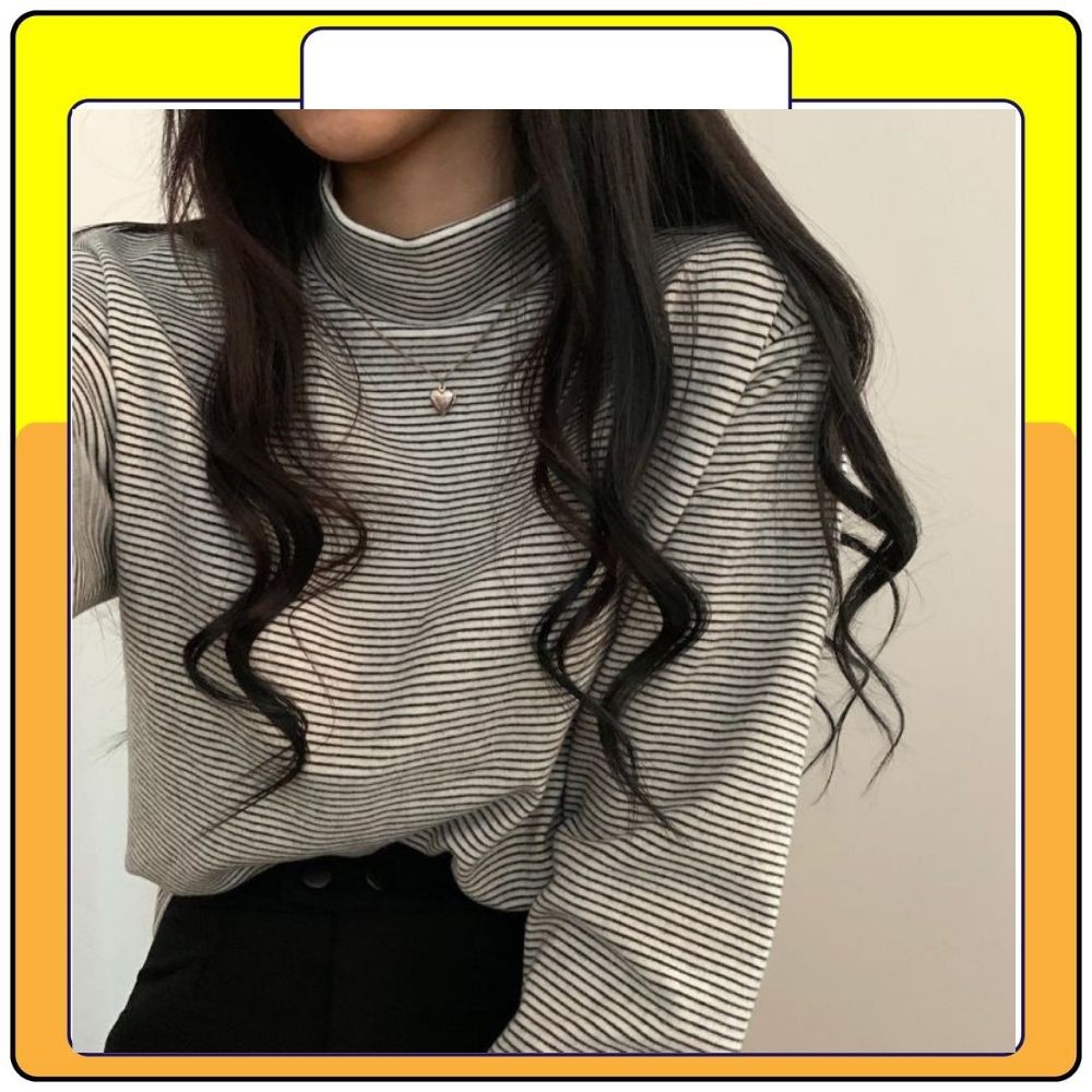 Giới thiệu Áo nỉ sweater kẻ cổ lọ , áo len kẻ ngang cổ cao tay bồng cá tính năng động Queenshop