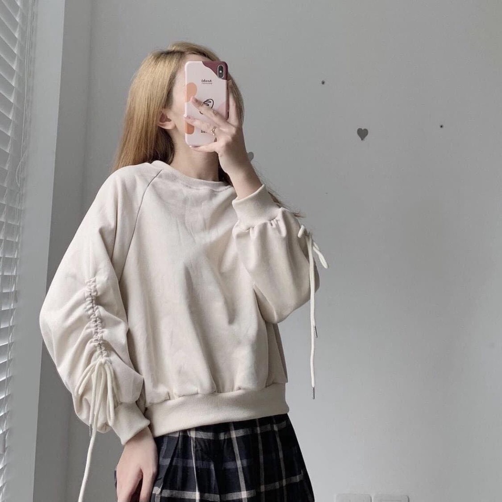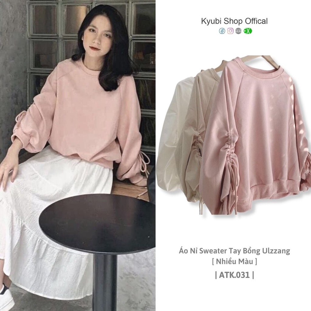 Áo nỉ sweater nữ tay bồng kiểu dây rút ulzzang chất nỉ nhung Quảng Châu [Nhiều màu ]- Áo kiểu nữ Kyubi Shop - ATK033