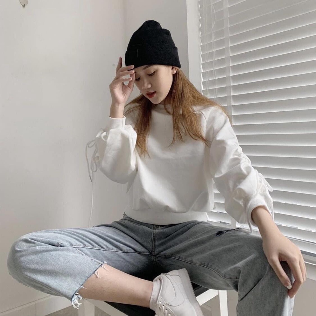 Giới thiệu Áo nỉ sweater nữ tay bồng kiểu dây rút ulzzang chất nỉ nhung Quảng Châu [Nhiều màu ]- Áo kiểu nữ Kyubi Shop - ATK033