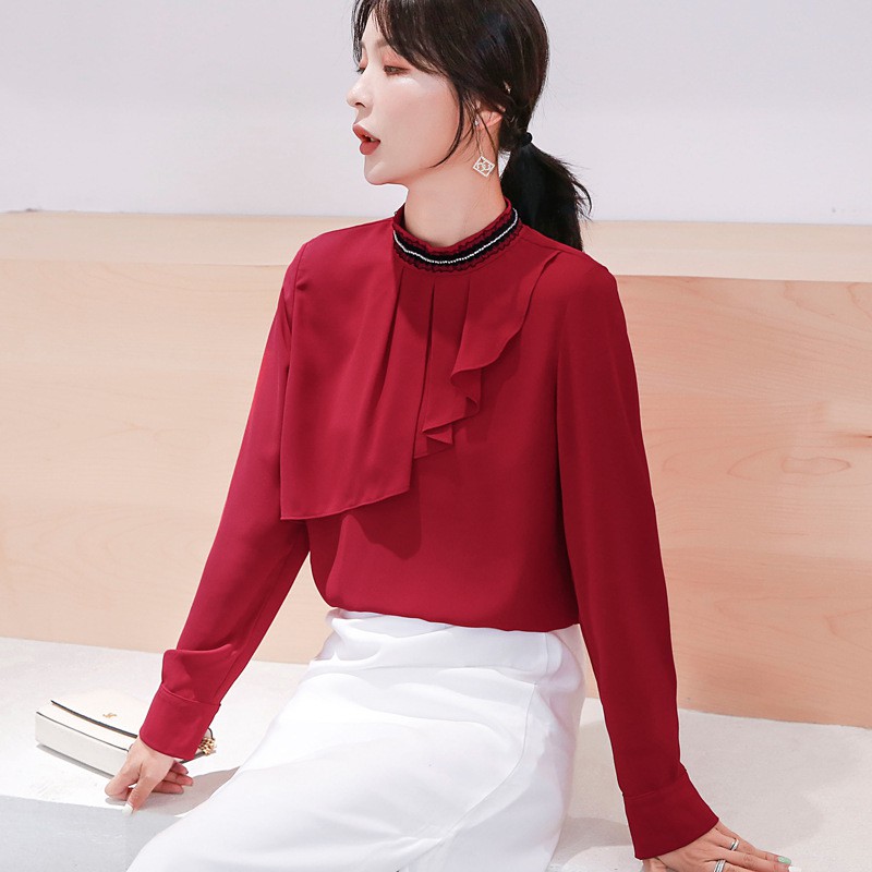 Chất Liệu Vải: Lụa Kiểu Dáng: Sơ mi dài tay Size: S M L XL XXL Màu sắc: Đỏ, đen, trắng