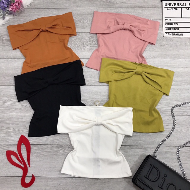 Áo ống nơ mặc đc 2 kiểu ống đc nơ lệch xéo được