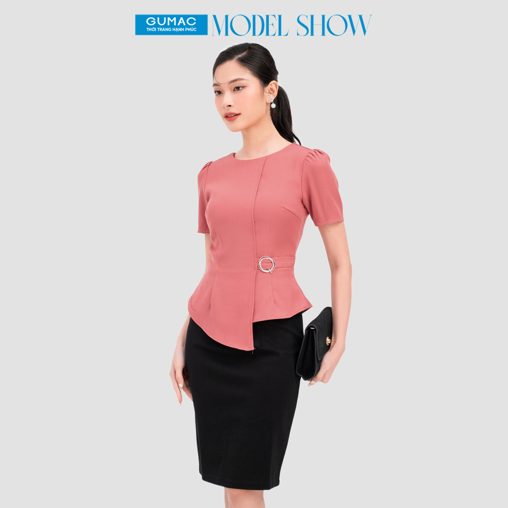 - Áo pepum vạt đắp giả thân trước, phụ kiện trang trí ở quai eo. Nhún đầu vai. Dây kéo thân sau áo.