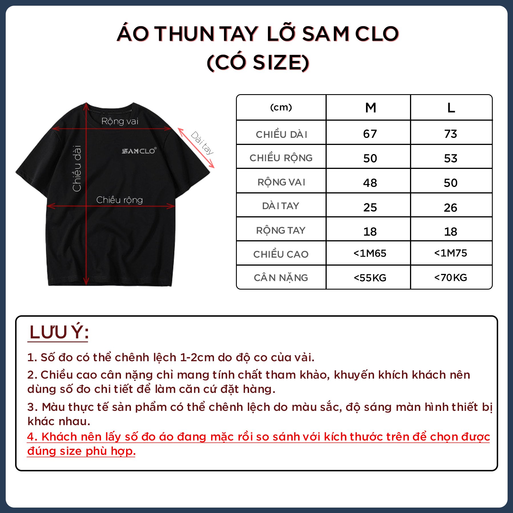 SỐ ĐO - KÍCH THƯỚC ÁO THUN TAY LỠ