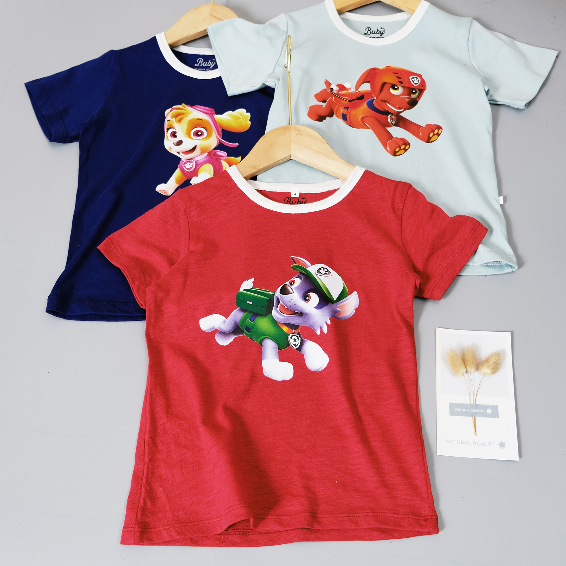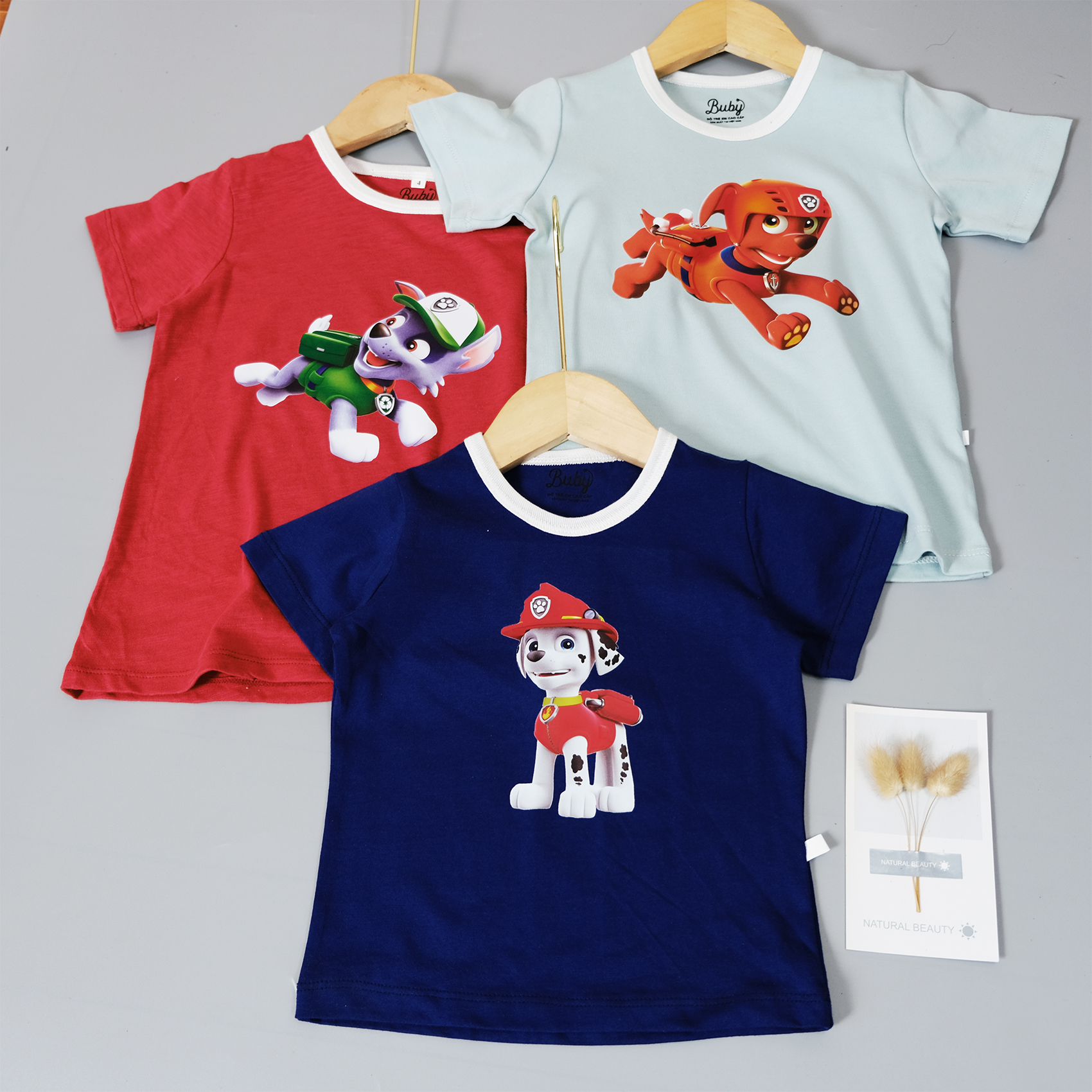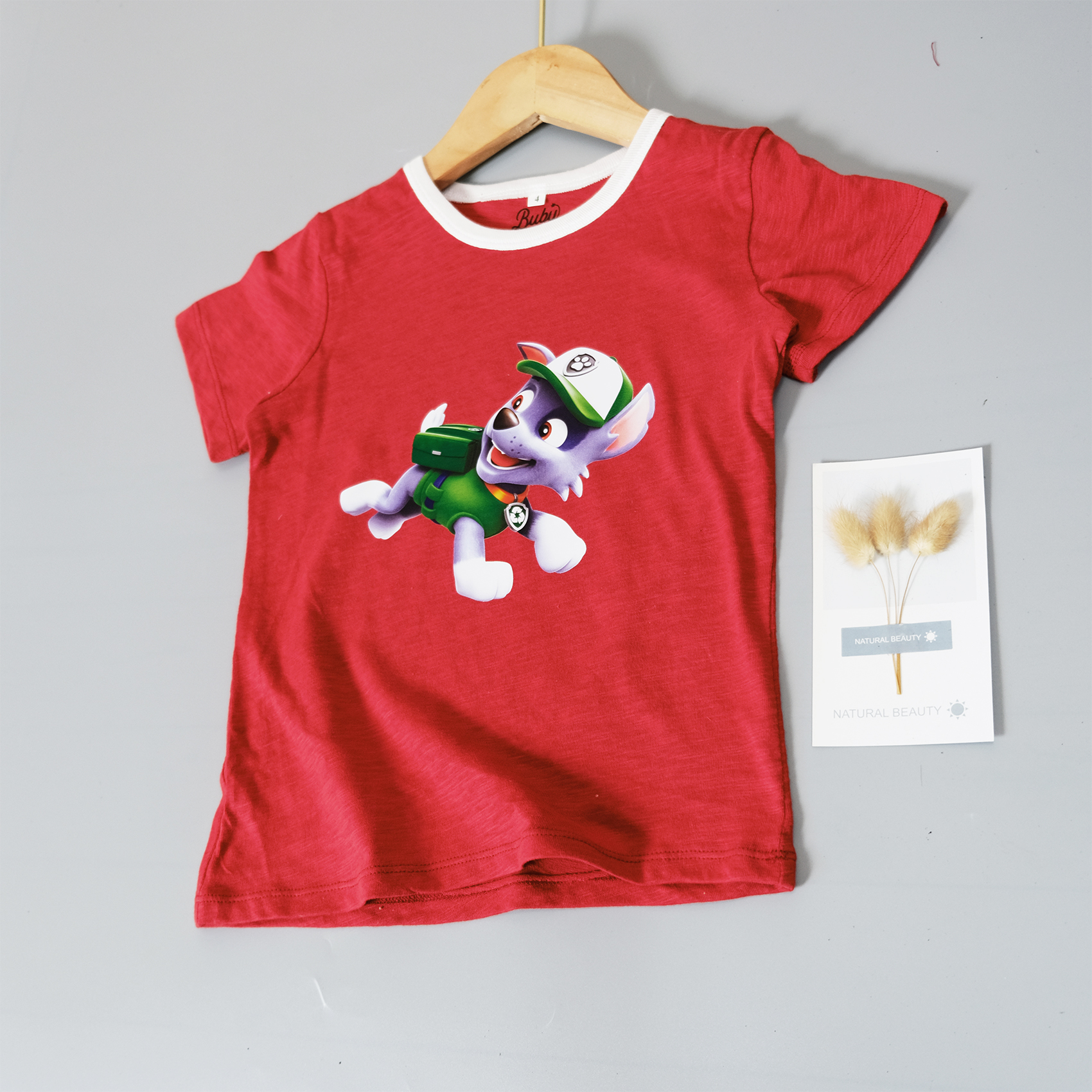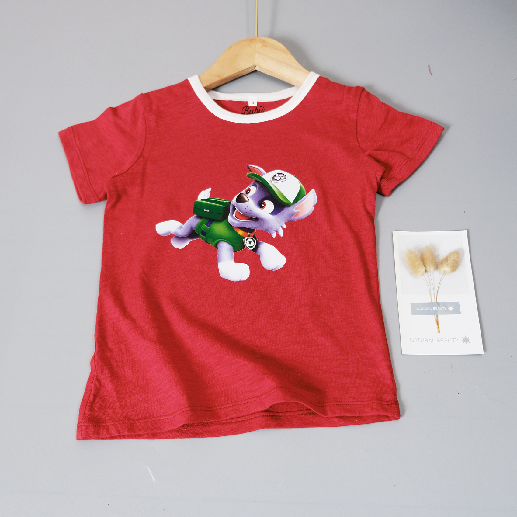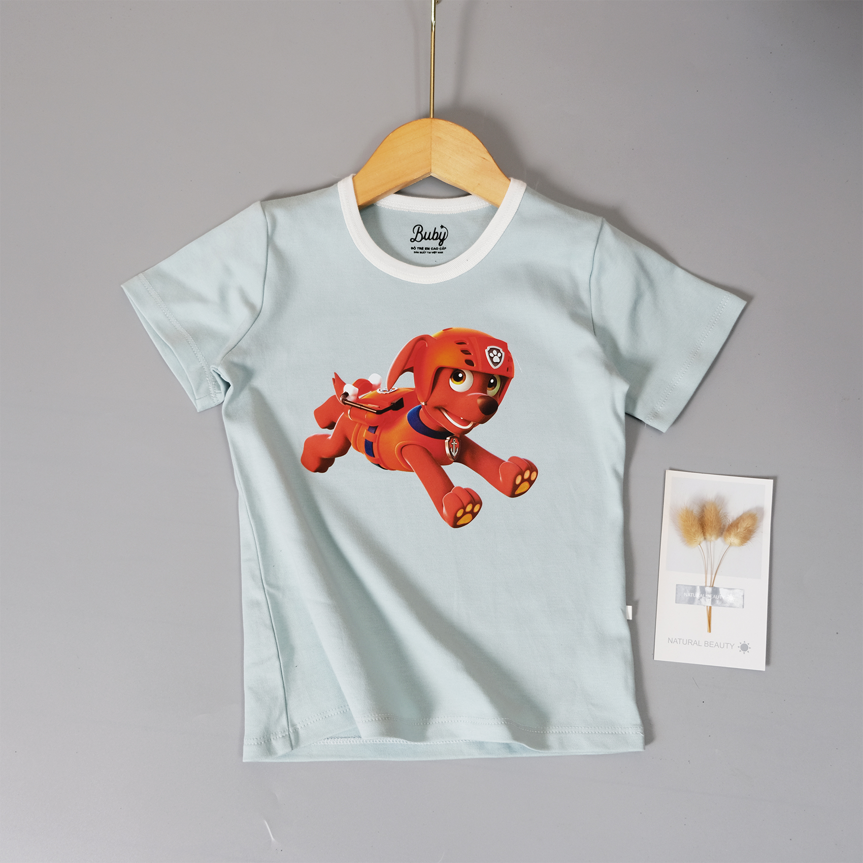 Áo phông trẻ em, In chú chó cứu hộ dễ thương, Chất vải cotton 100% (7-23kg) vải nhẹ nhàng thoáng khí tốt
