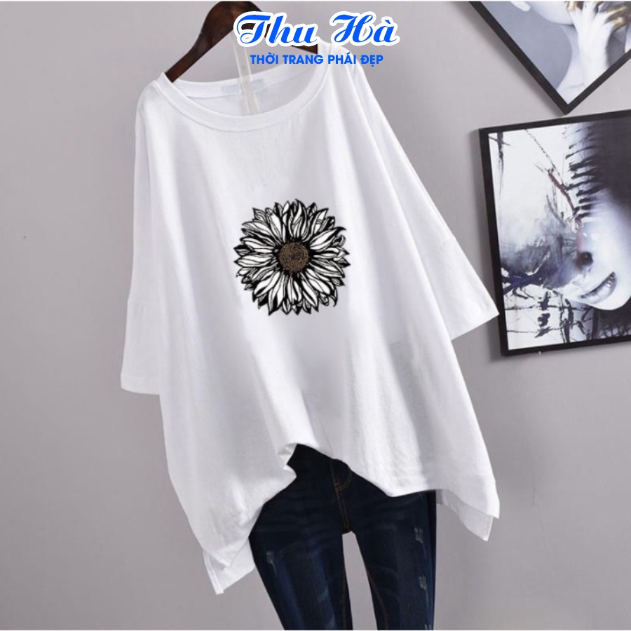 Giới thiệu Áo phông unisex freesize form rộng tay lỡ Thu Hà chất liệu thun Cotton in hình Hoa Hướng Dương