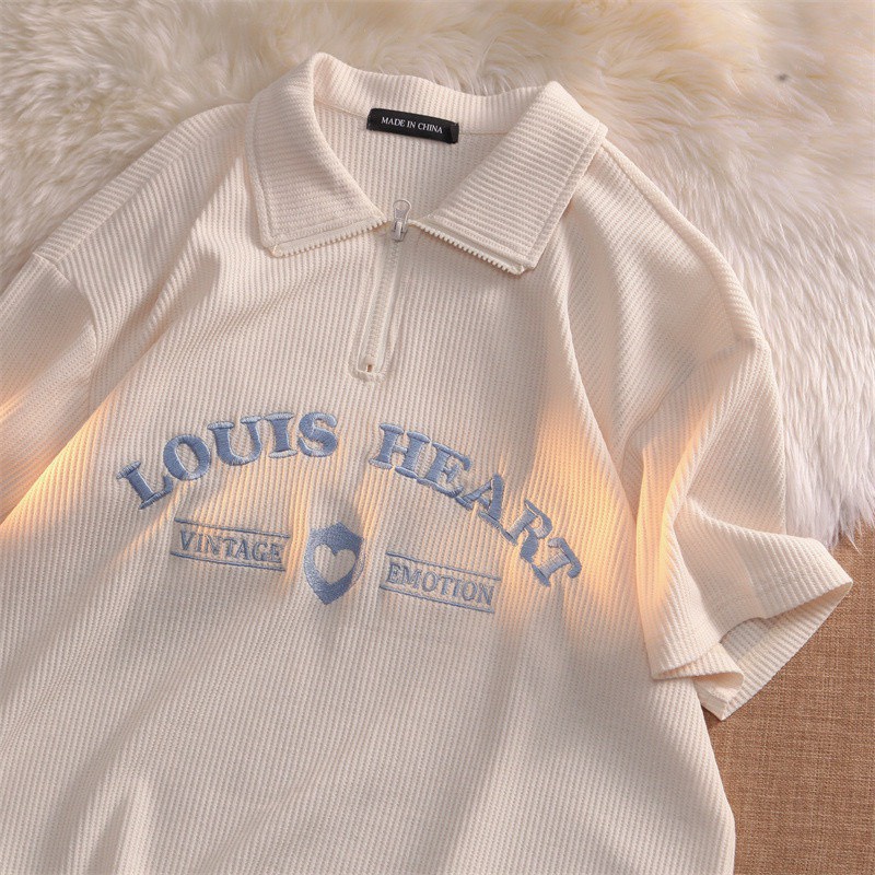 Giới thiệu Áo Polo Louis Cổ Bẻ Nữ Chất Thun Tổ Ong Form Rộng Tay Lỡ Thêu Chữ Trái Tim Xanh Kiểu Hàn Quốc Cá Tính Ulzzang