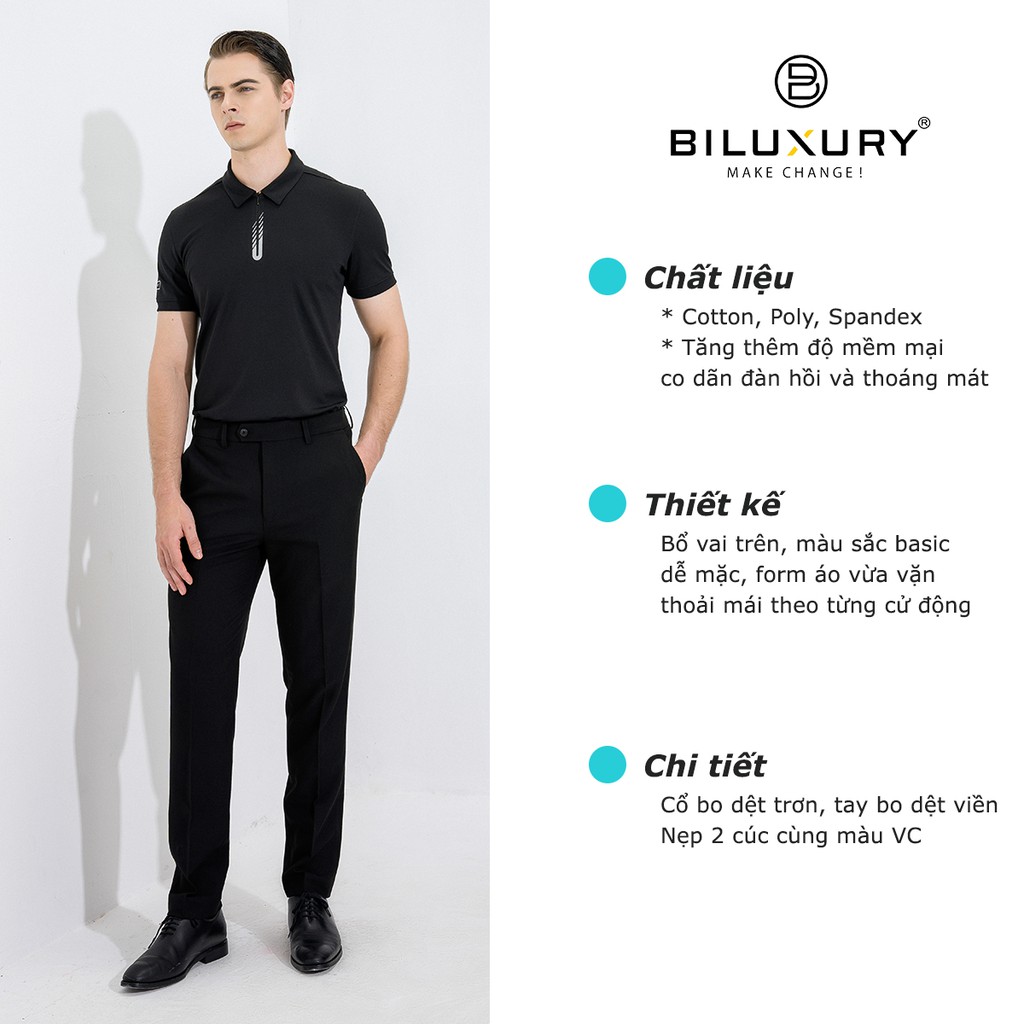 Thời Trang Nam > Áo > Áo polo || Áo polo nam Biluxury thun cổ bẻ bodyfit vừa người tôn dáng vải mềm mịn lịch lãm 4APCT018DEN