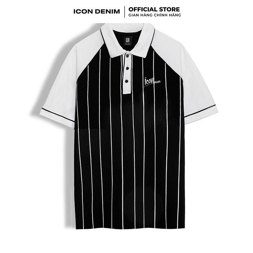 Giới thiệu Áo polo nam bóng chày ICON DENIM Unisex kẻ sọc phối chữ ký thêu Cotton thoáng mát co giãn tốt PLEC0003