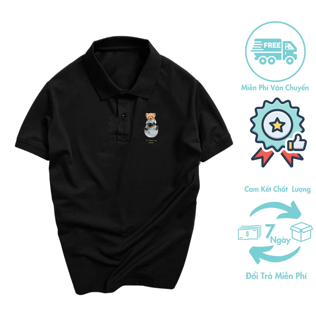 Giới thiệu Áo polo nam , cổ dệt bo len , hình in sắc nét ,áo thun nam có cổ tay ngắn thanh lịch POLO Teedy Space- Soha Clothing
