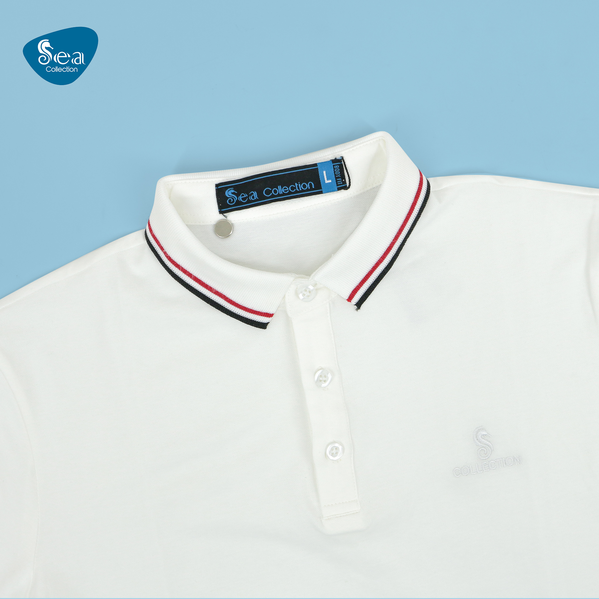 Thiết kế: đơn giản, với logo Sea Collection thêu nổi cao cấp, viền cổ và bo tay phối sọc phong cách thể thao khỏe khoắn.