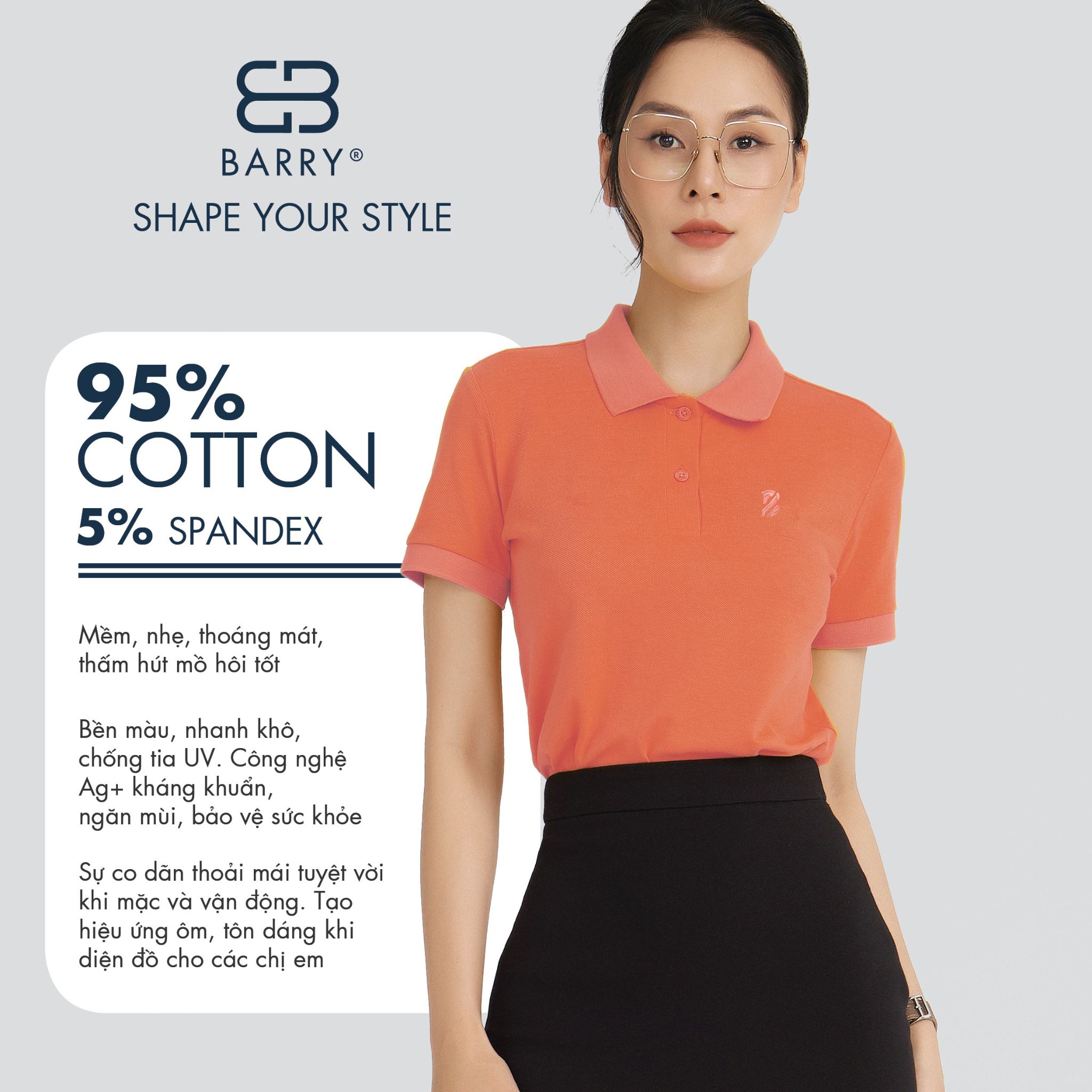 Chi tiết sản phẩm Áo Polo Nữ Vải Cotton Cá Sấu Gai Cao Cấp BARRY
