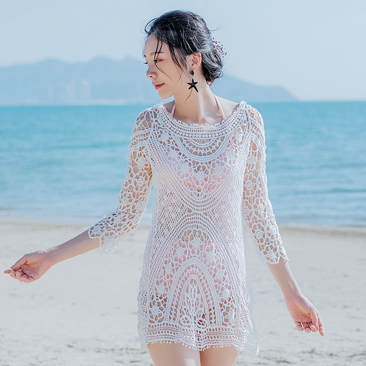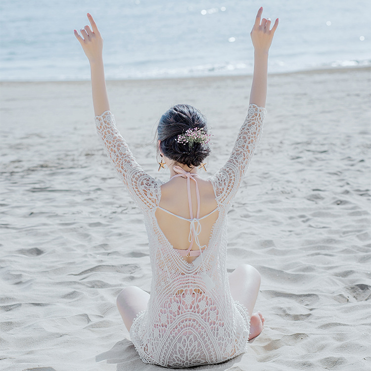 - Thiết kế áo đơn giản mà thanh lịch cùng những họa tiết hoa ren tinh tế với khoảng hở tôn làn da trắng sáng.