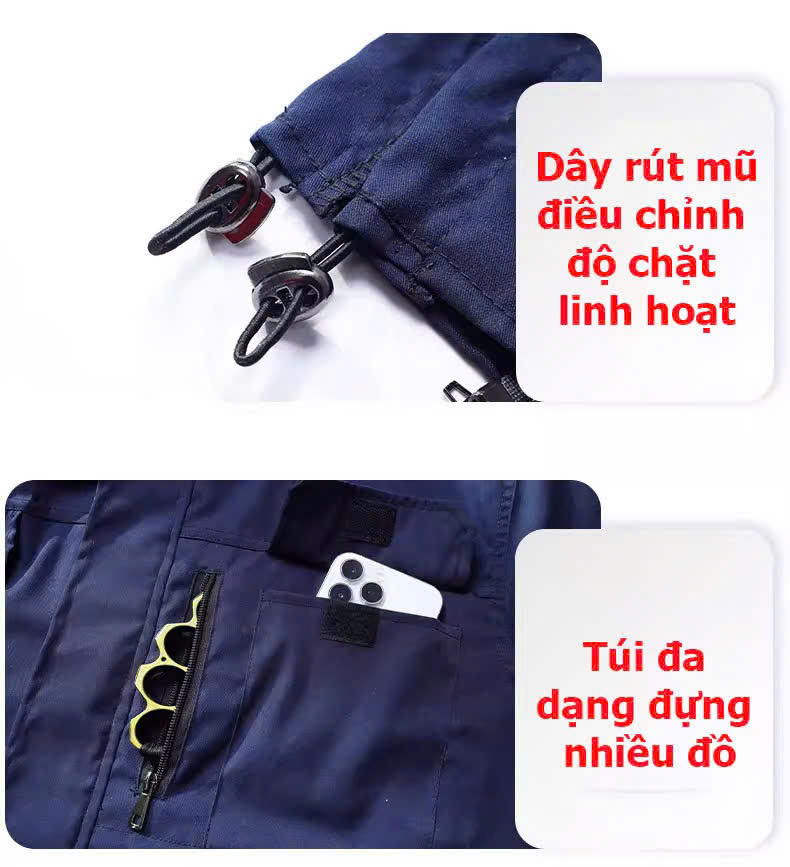 - MŨ áo tháo rời, túi có khóa kéo, có DÂY RÚT cổ áo giúp lư thông không khí tốt lên phần gáy