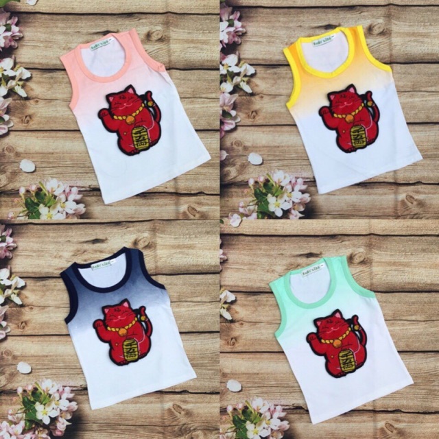 Thời trang trẻ em & trẻ sơ sinh > Quần áo trẻ em > Áo || Áo sát nách ba lỗ mèo may mắn cho bé AT40-2101