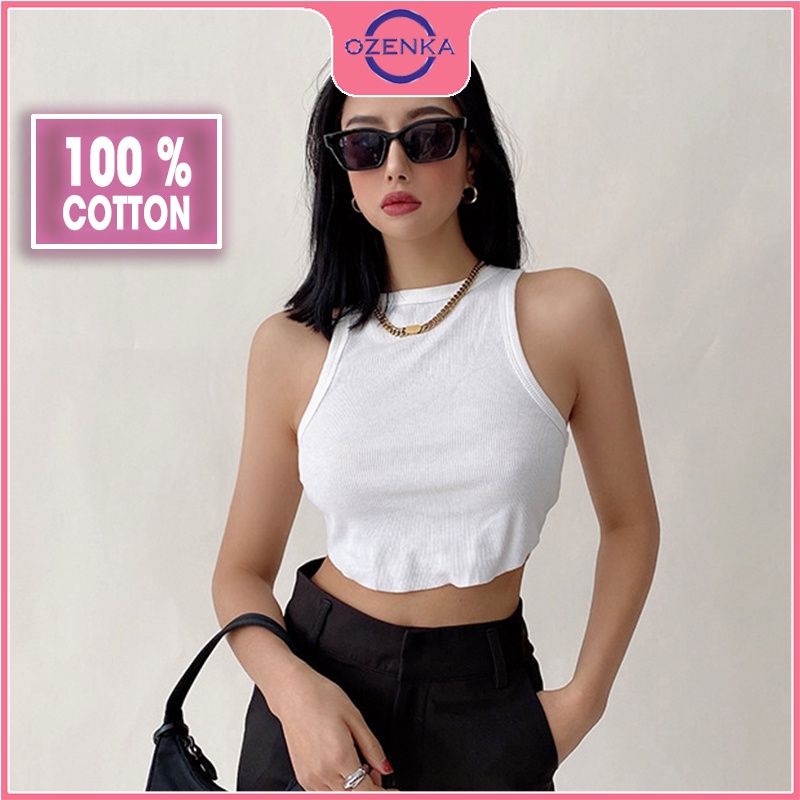 - Chất liệu : len gân cao cấp 100% sợi cotton tự nhiên mềm mịn thân thiện với da. - Màu sắc : đen , trắng - Size : free size dưới 50kg - Sản xuất bởi OZENKA - Phong cách :Hàn Quốc , sang chảnh, ba lỗ , vạt bầu , sát nách, croptop - Thích hợp mặc độc lập, tập gym , mặc trong áo blazer.Mặc kèm áo cardigan.Xinh khi mặc cùng quần cạp cao hoặc chân váy.
