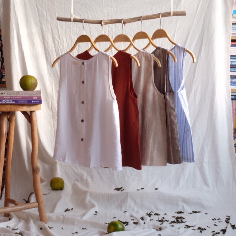 Giới thiệu Áo sát nách nút sau lưng Đơn giản Freesize Vintage Thời trang Nữ Áo ba lỗ by Góc của Lam
