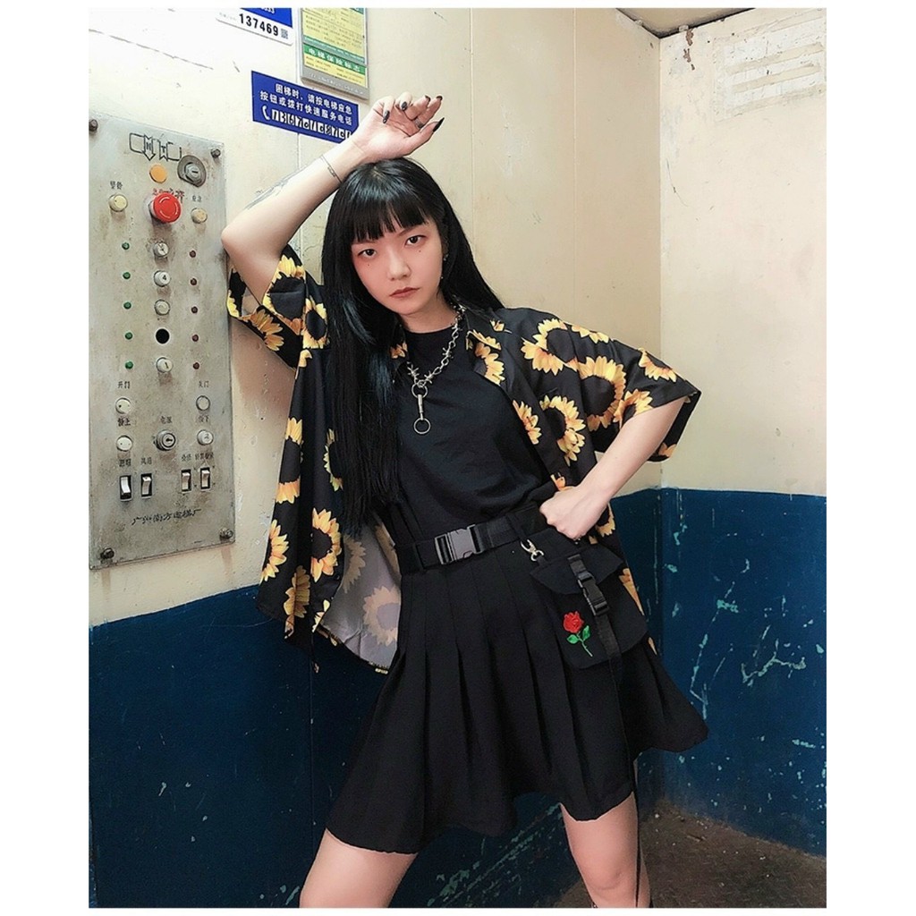 Áo sơ cặp đôi nam nữ - sơ mi tay ngắn siêu cá tính in họa tiết nổi bật hoa hướng dương mặt trời chất vải lụa mát mẻ mịn