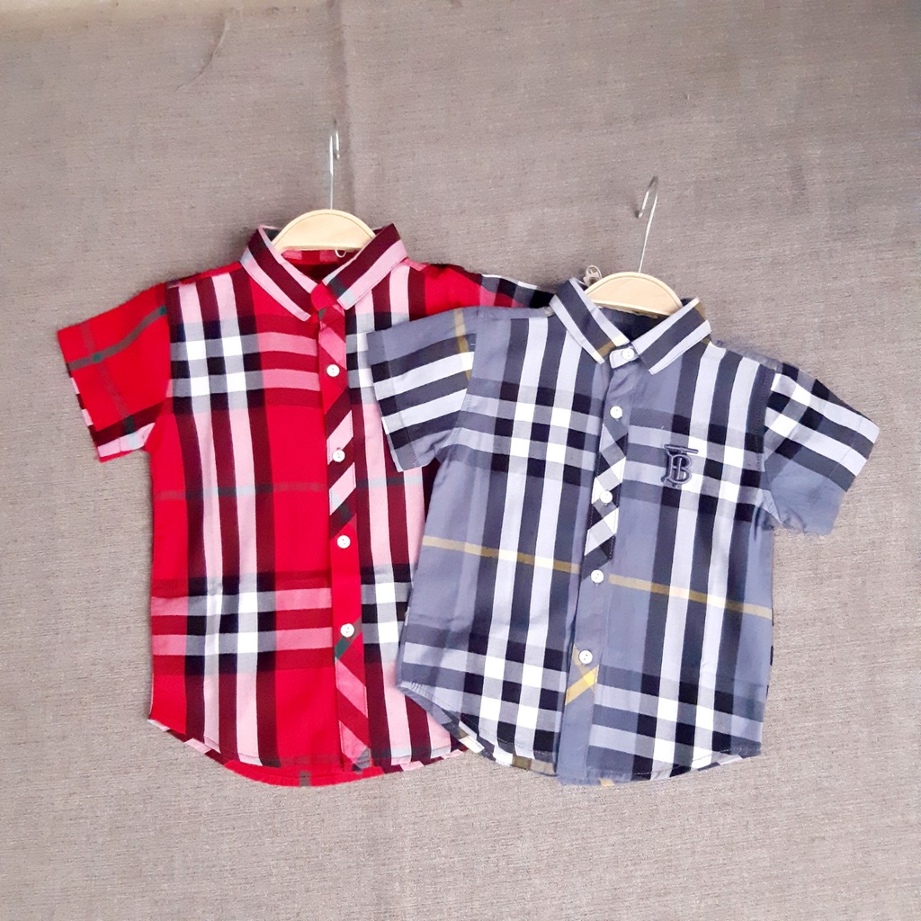Thời trang trẻ em & trẻ sơ sinh > Quần áo bé trai > Áo > Áo sơ mi || Áo sơ mi bé trai 2-8 tuổi cộc tay in chữ FF và kẻ, Áo hè cho bé vải thô thoáng mát thời trang