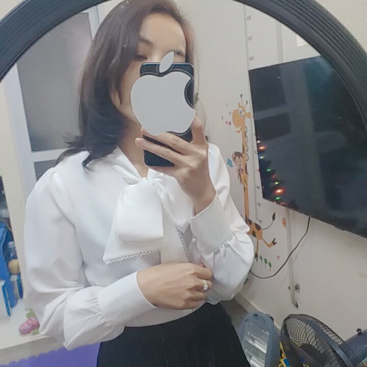 Giới thiệu Áo sơ mi công sở nữ kiểu hàn quốc Quyên cổ thắt nơ pha ren tay dài thanh lịch AA383 Trắng