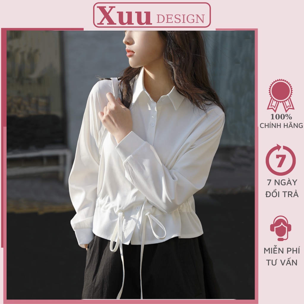 Áo sơ mi croptop Xuu Design Áo kiểu thắt dây rút eo cá tính chất vải Tơ Ý mềm mại