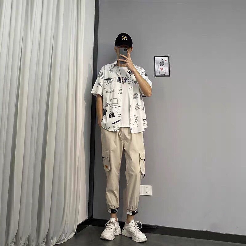 Giới thiệu ÁO SƠ MI LOANG HỌA TIẾT CHỮ KÝ HOẠT HÌNH TRẮNG ĐEN - ÁO KHOÁC SOMI NAM NỮ UNISEX