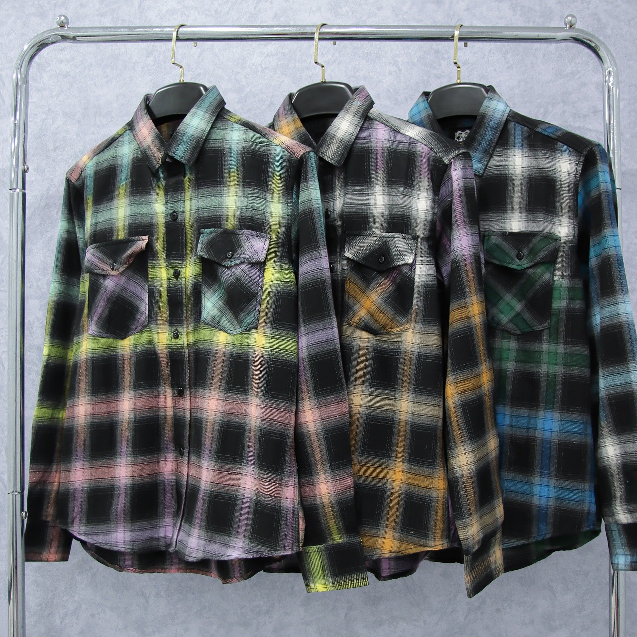 Áo sơ mi nam caro tay dài màu loang 2 túi hàng cao cấp