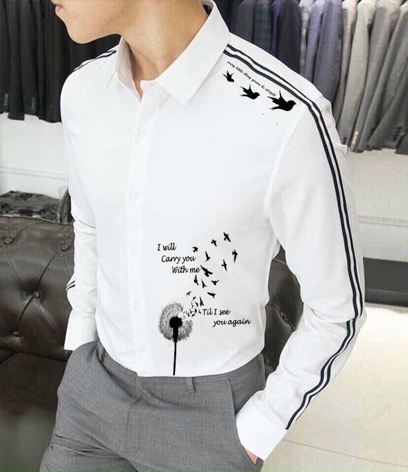 Thiết kế Áo sơ mi nam dài tay họa tiết bồ công anh và chim cao cấp phong cách đường may tỉ mỉ.