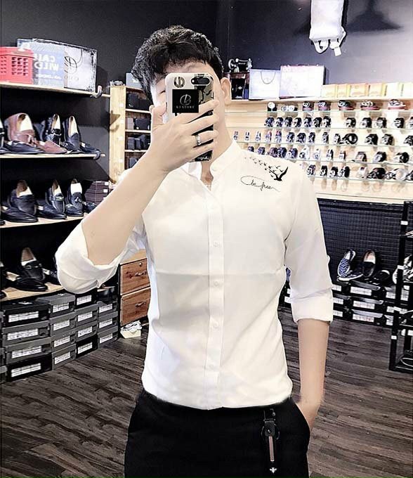 Thiết kế Áo sơ mi nam họa tiết chữ và chim cao cấp phong cách đường may tỉ mỉ.