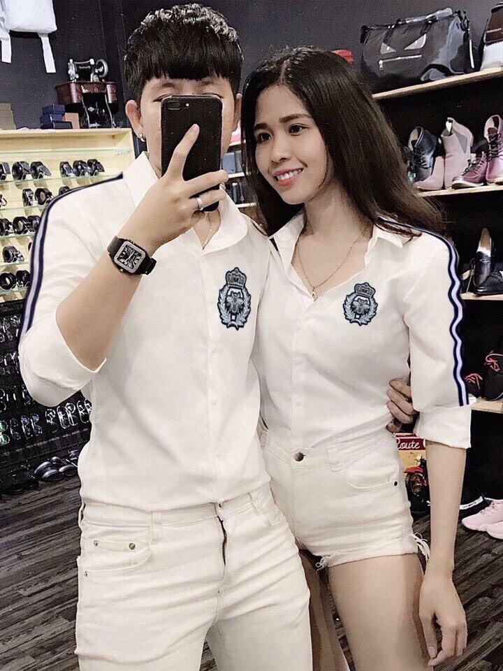 Áo sơ mi nam dài tay có logo phối sọc tay cao cấp