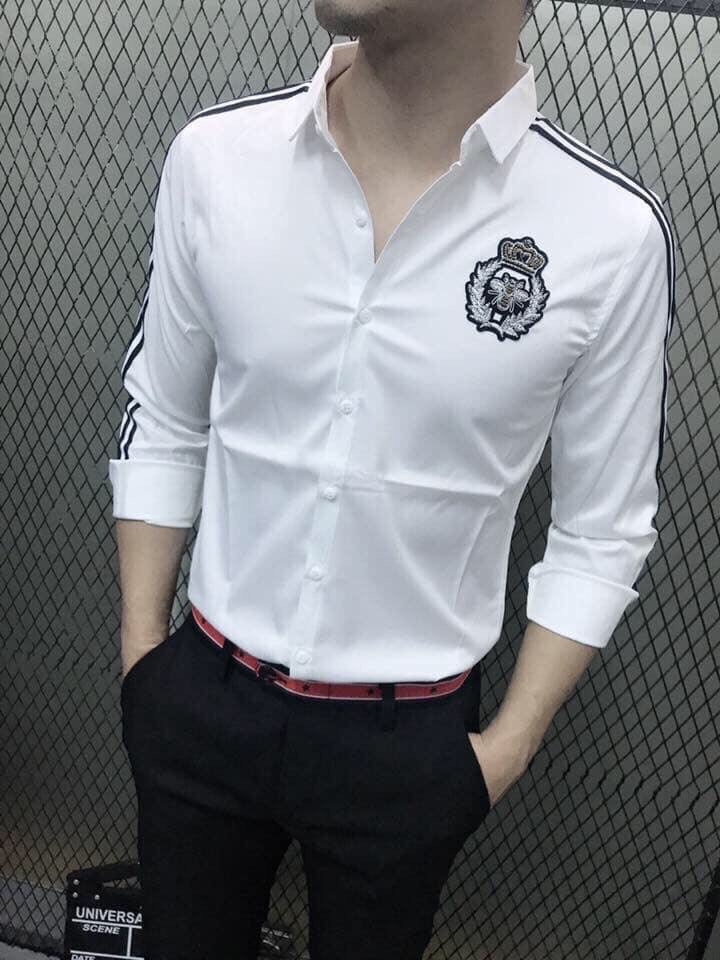 Thông tin chi tiết sản phẩm:Áo sơ mi nam dài tay có logo phối sọc tay cao cấp