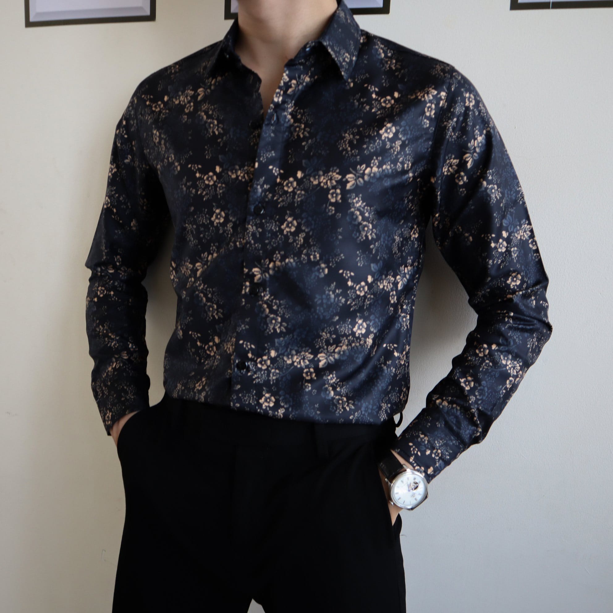 Áo Sơ Mi Nam Tay Dài Họa Tiết Form Chuẩn Phong Cách Hàn Quốc