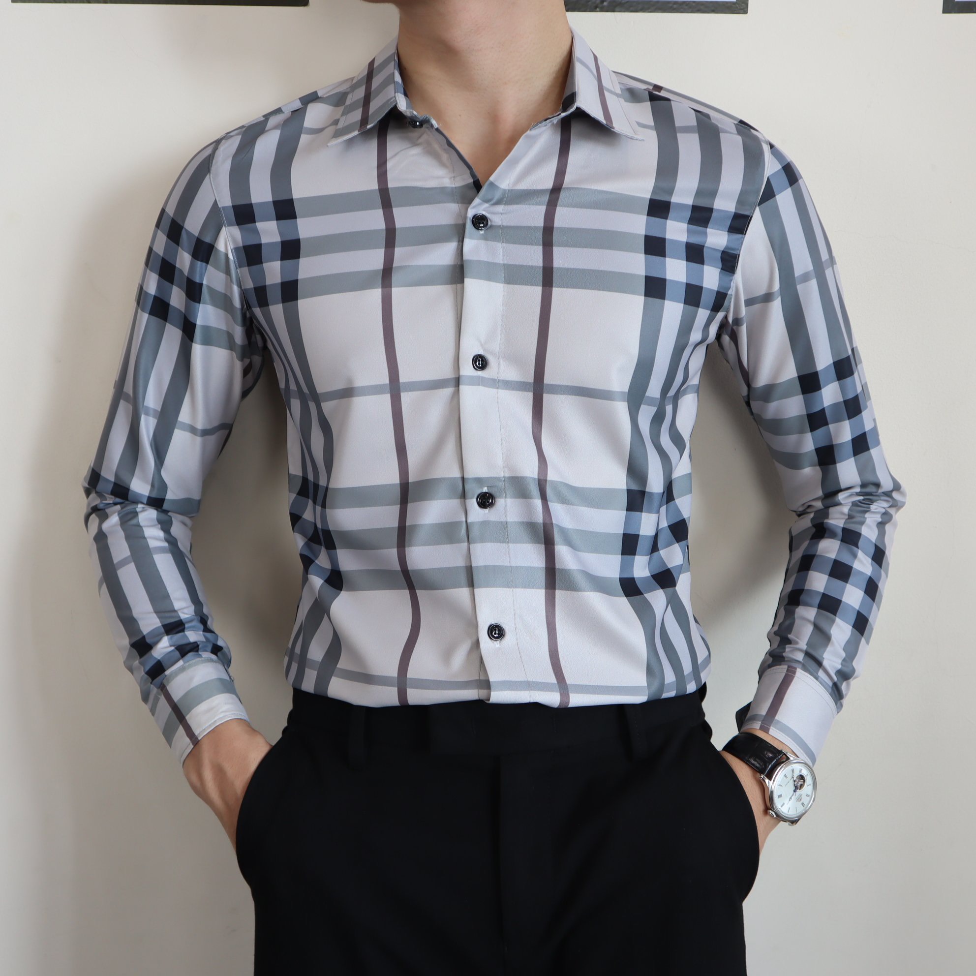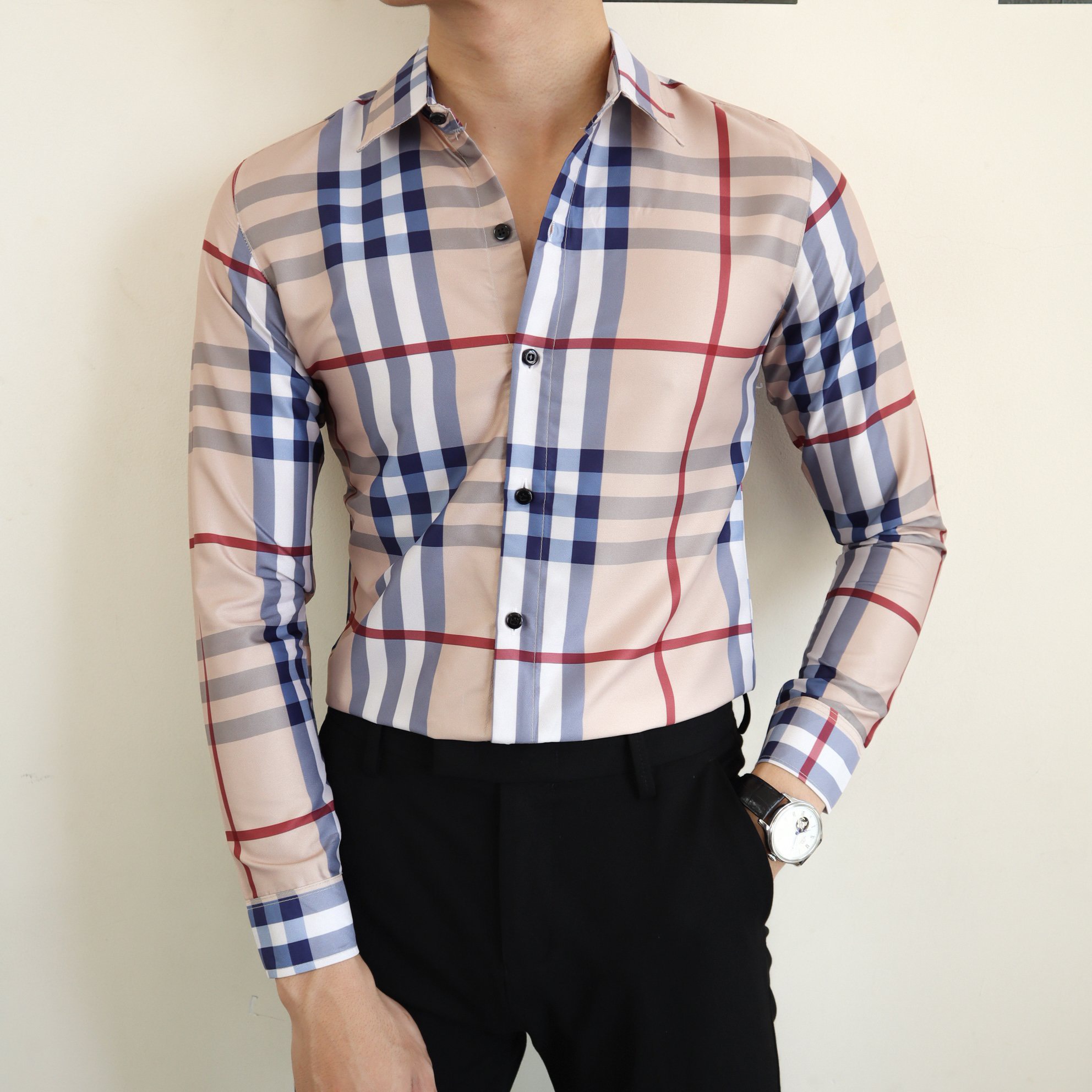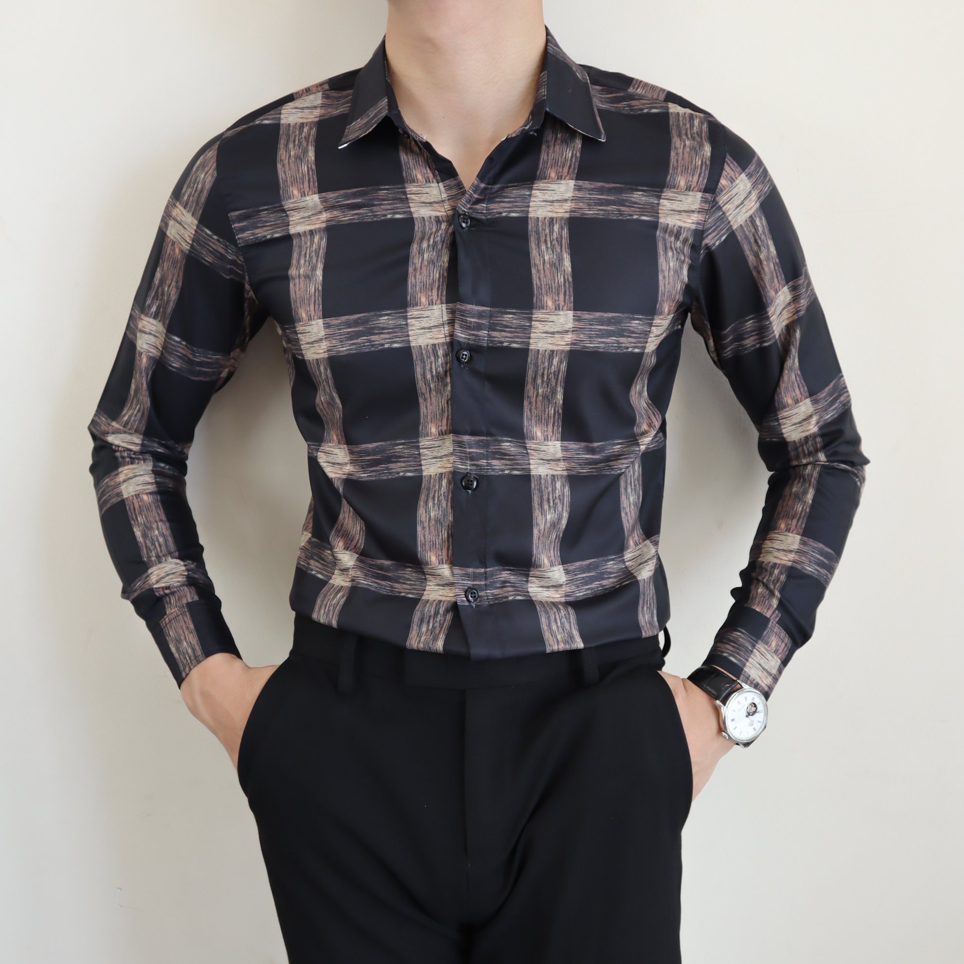 Áo Sơ Mi Nam Tay Dài Họa Tiết Form Chuẩn Phong Cách Hàn Quốc