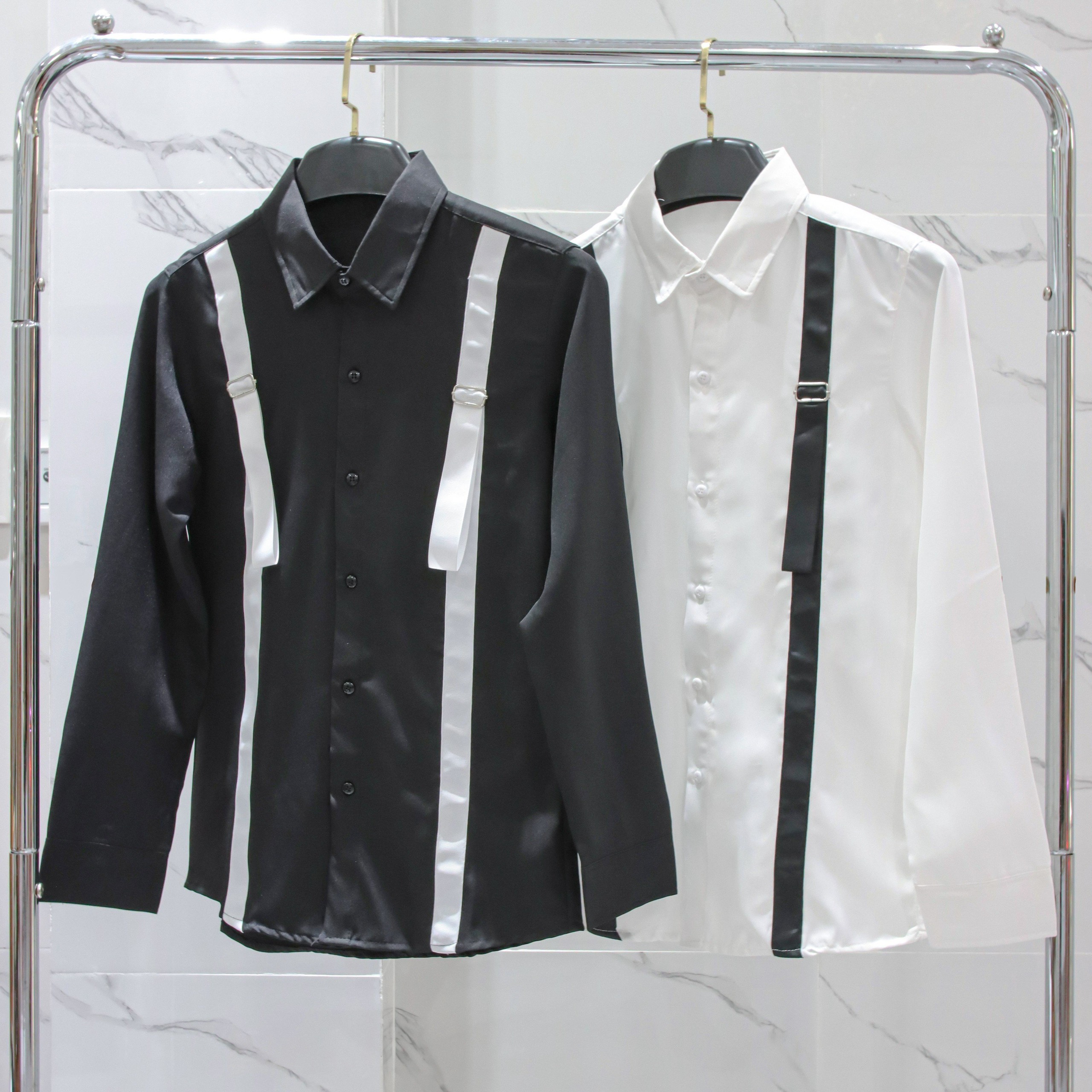 ️ Tên sản phẩm: Áo sơ mi nam dài tay thiết kế thêu dây đen sọc hai vai chẹn