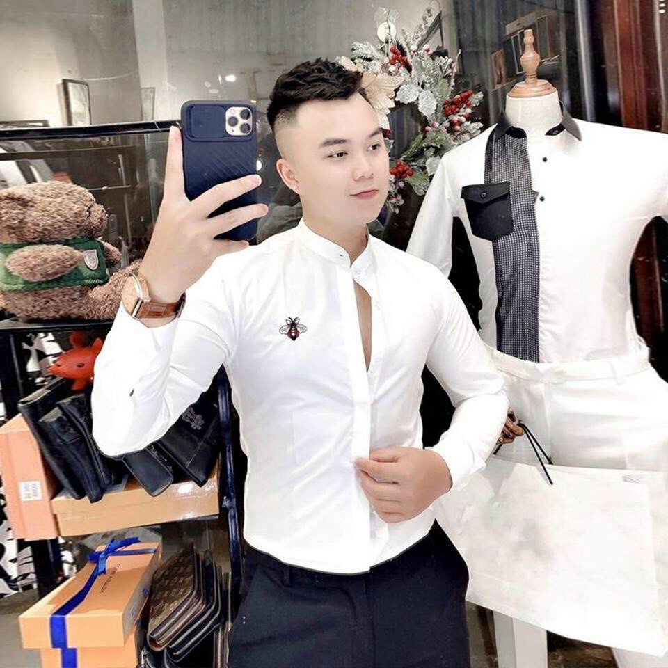Thiết kế Áo sơ mi nam tay dài trắng họa tiết côn trùng cao cấp phong cách đường may tỉ mỉ.