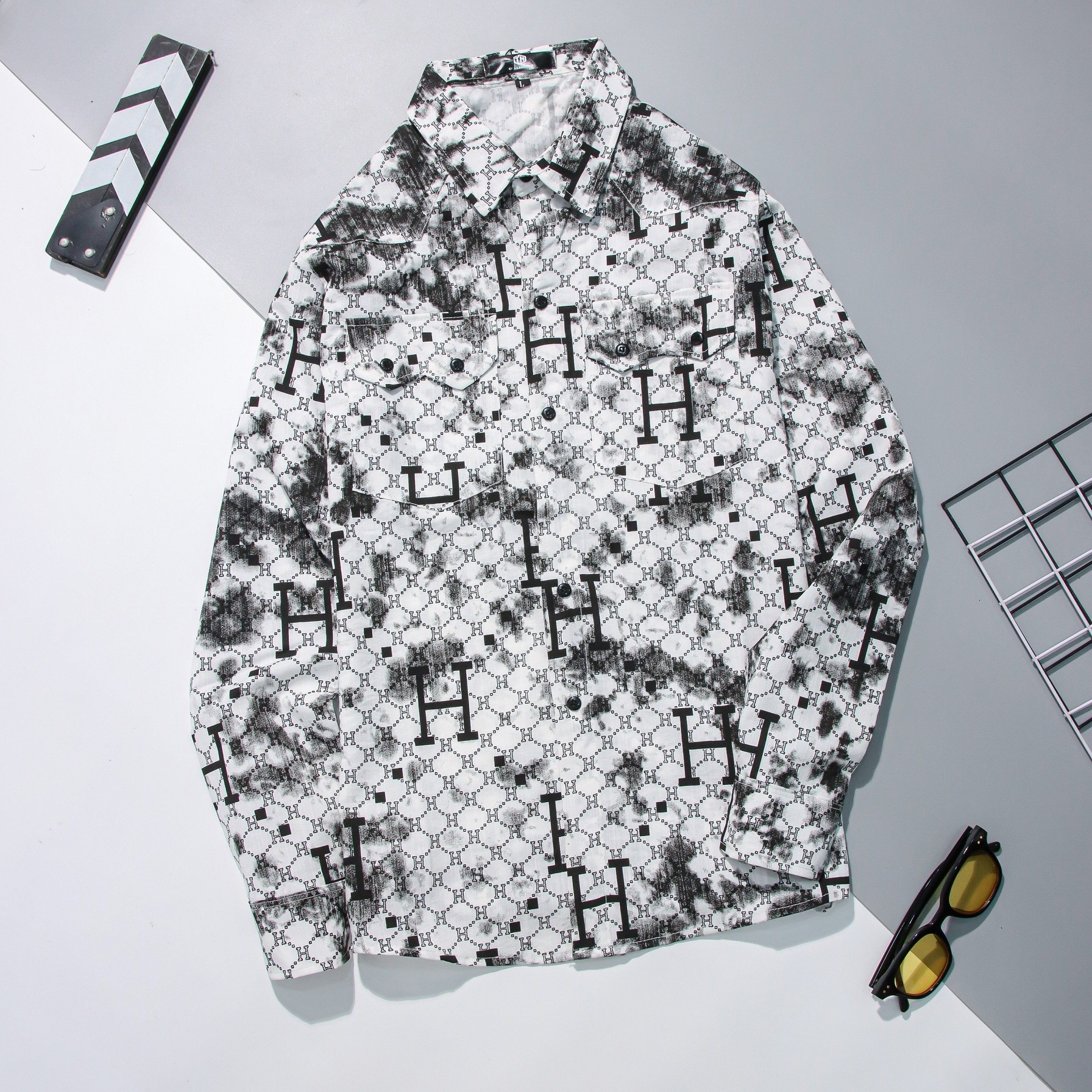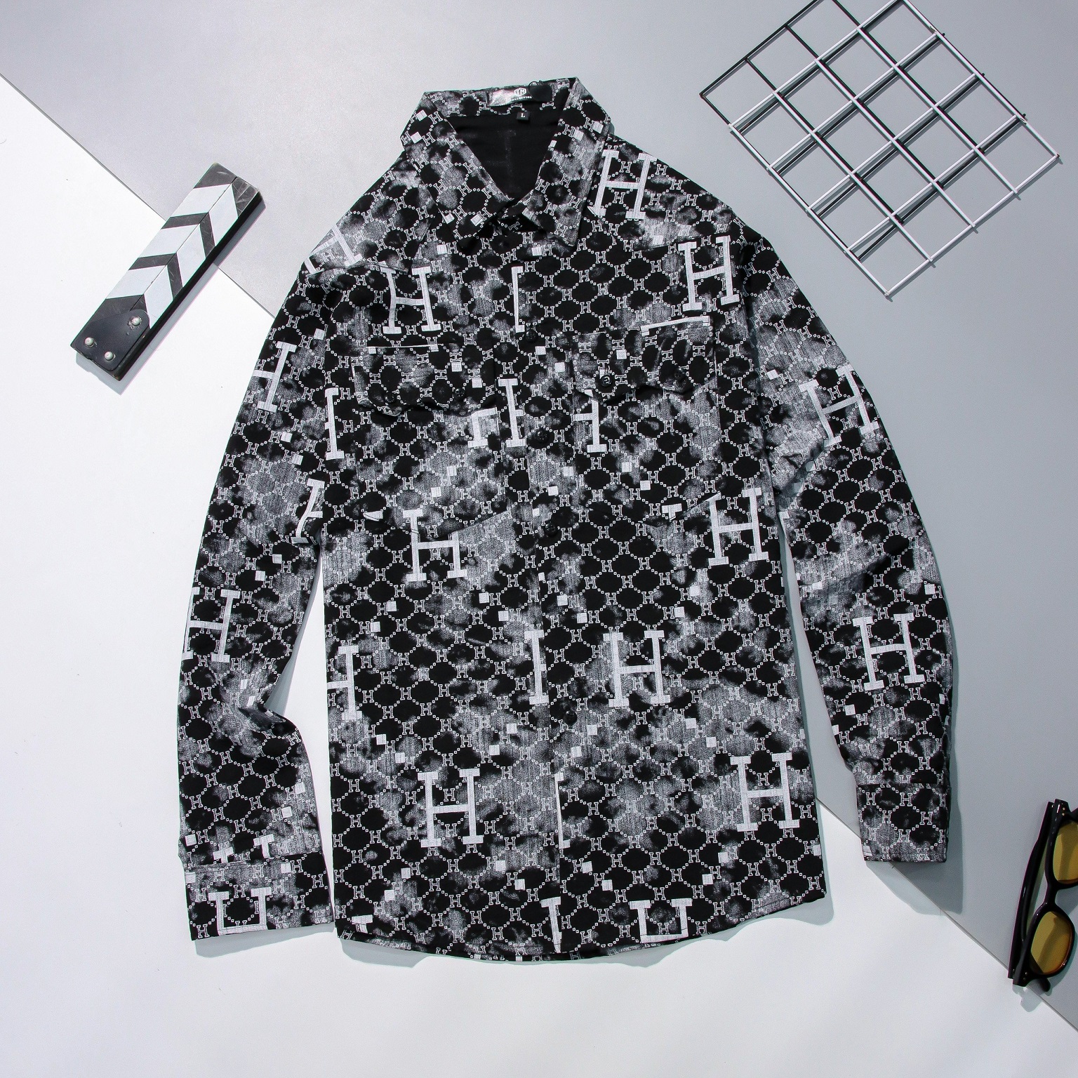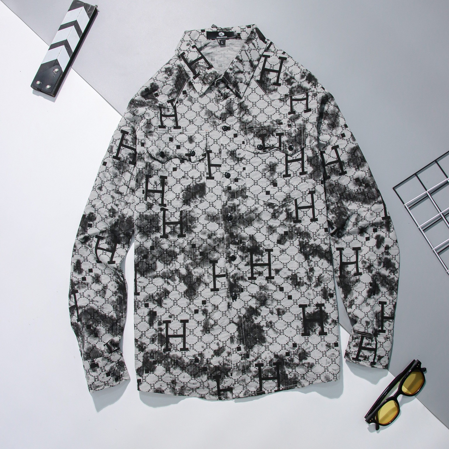 Áo sơ mi nam tay dài vải đũi in full họa tiết Chữ L,V form Slimfit phong cách Hàn Quôc Size từ 45kg-75kg