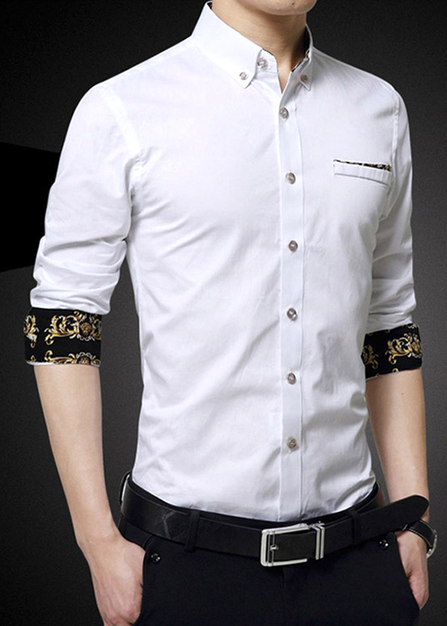 Mô Tả sản phẩm : Áo sơ mi tay dài viền cổ và tay
