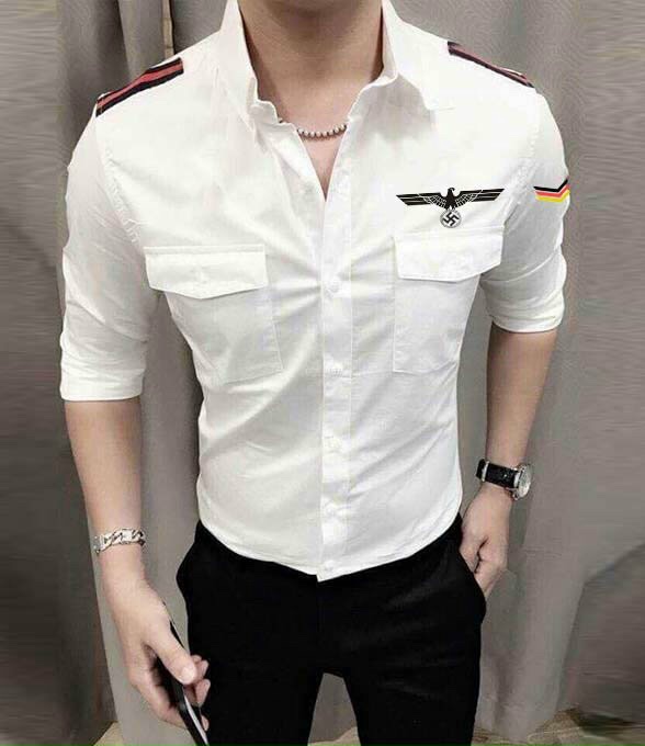Thiết kế Áo sơ mi nam viền vai cơ trưởng họa tiết đại bàng cao cấp phong cách đường may tỉ mỉ.